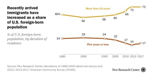 2019年6月4日 外国出身の米国人は 2017年、 4440万人に。 うち17%に当たる 760万人の居住歴は わずか5年以下。 高い資格やスキルを持つ移民を 歓迎する政府方針もあり、 以前と異なる移民が 増えている。 5年以下の居住歴の 移民の場合、 大卒以上が47%と 高…