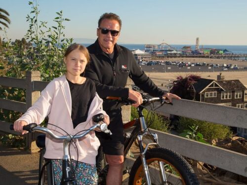 環境活動家トゥーンベリが、シュワルツェネッガーとサイクリング