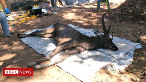 タイの国立公園で、シカがプラスチックのゴミを食べて死亡