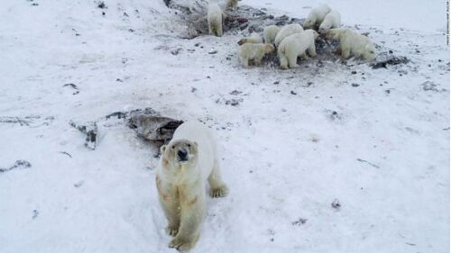 人口5百人のロシアの村に、ホッキョクグマが60頭出現
